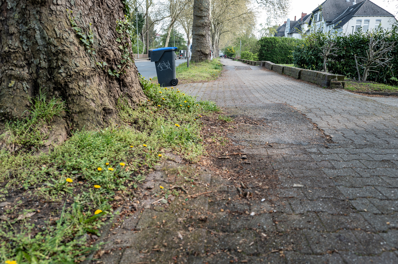 Die Preußenstraße wird von zahlreichen großen Bäumen gesäumt. So schön dieses Straßenbild auch ist – das ausladende Wurzelwerk hat den Belag des Geh- und Radwegs über die Jahre stark beschädigt. Unebenheiten und Schlaglöcher prägen das Bild und stellen ein erhebliches Sicherheitsrisiko dar. Besonders problematisch ist die Situation in der Fahrtrichtung vom Preußenbahnhof kommend, wo die Schäden am deutlichsten ausgeprägt sind.